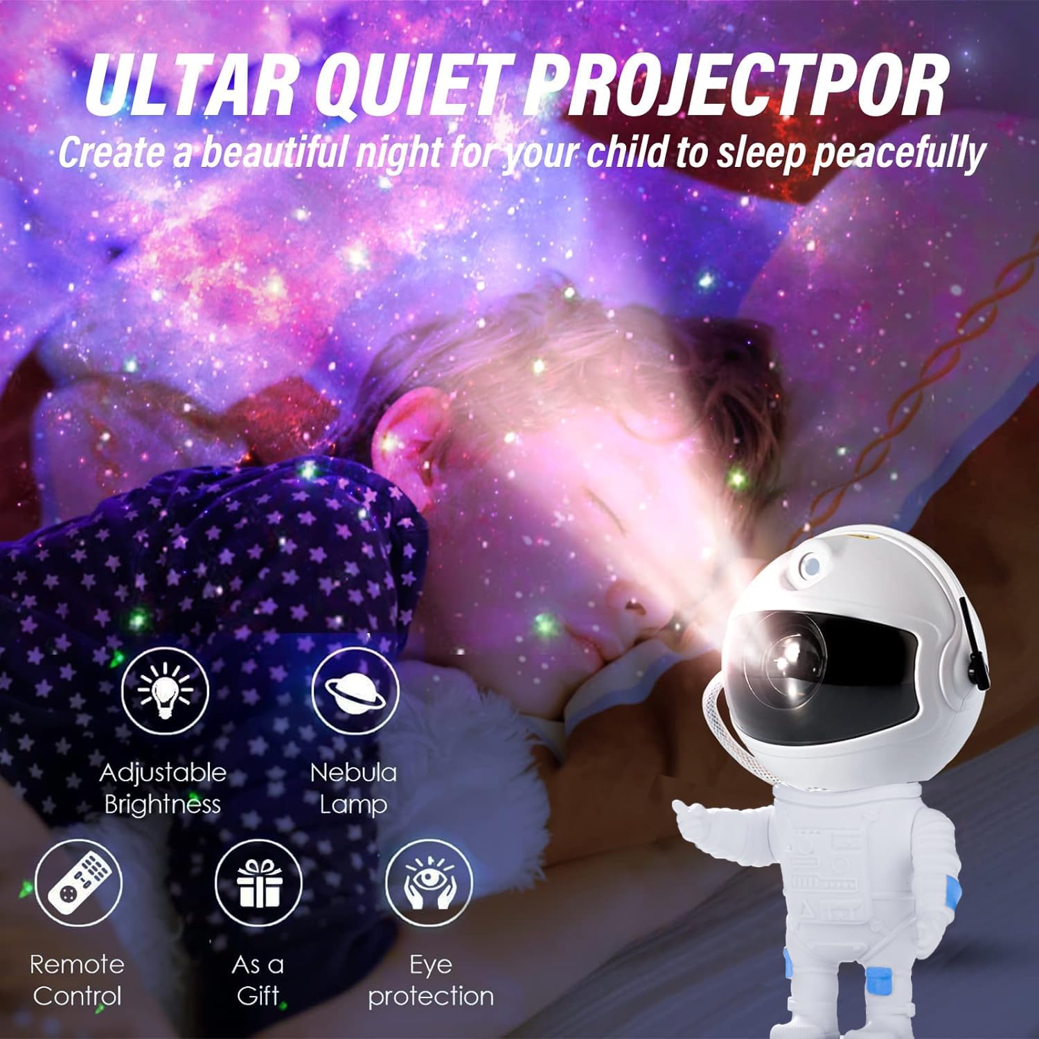 – The astronaut design is both novel and unique adding to the galaxy theme of the projector whilst also serving a decor in your room when it is not in use.